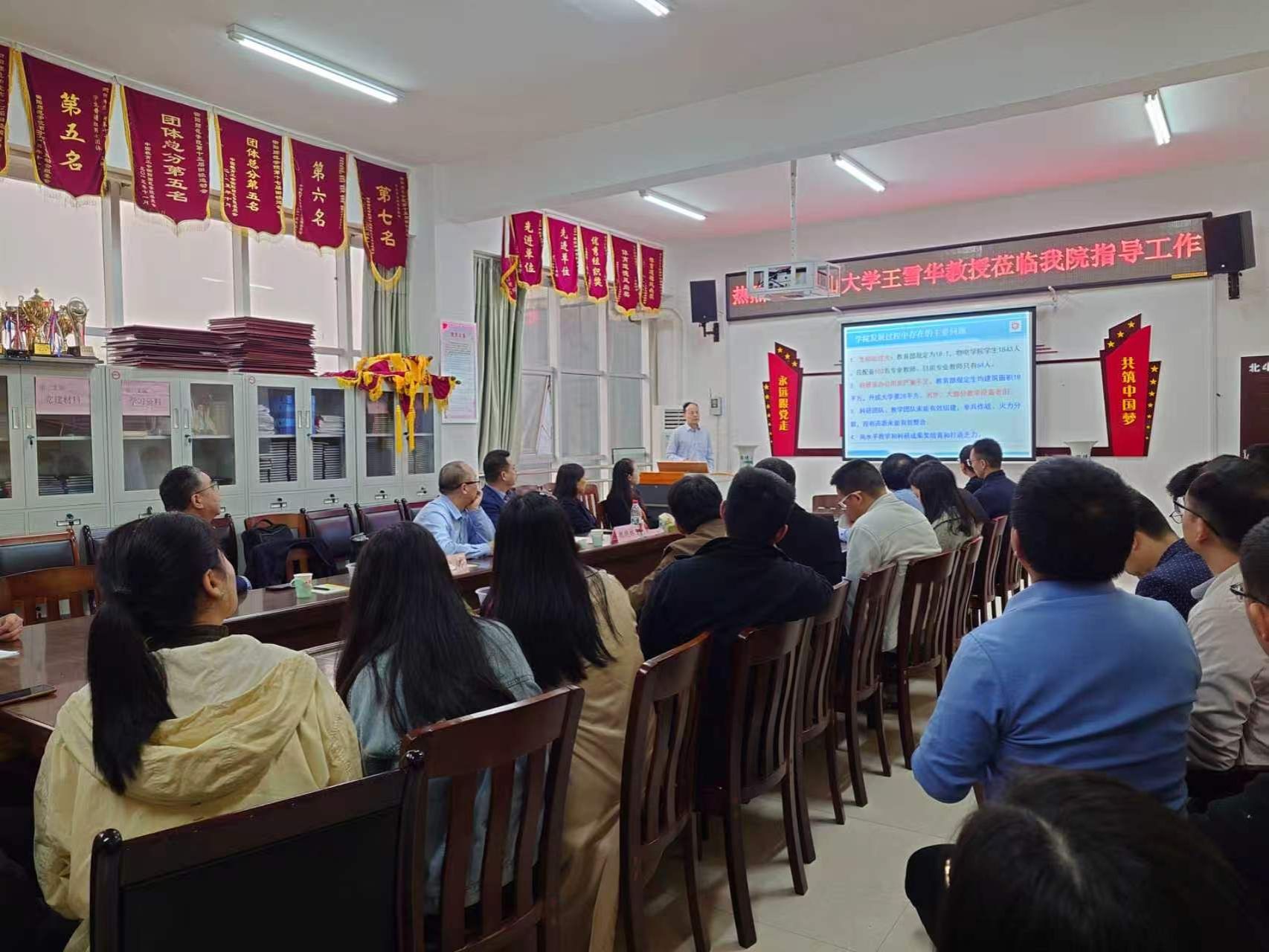 4月7日上午,国家杰出青年基金获得者和国家有突出贡献政府特殊津贴获得者,中山大学王雪华教授一行应邀在学院4楼会议室开展学术交流指导,我校校长魏晓林教授、副校长李玲玲教授和发展规划处的领导一同出席。学院教师约40人参加了交流座谈,魏晓林校长主持座谈会。